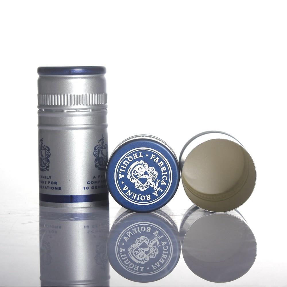 30*60mm glossy off-set printing Top embossind and printing knurling Saranex/Sarantin liner BVS/BVP ROPP aluminum wine screw cap
